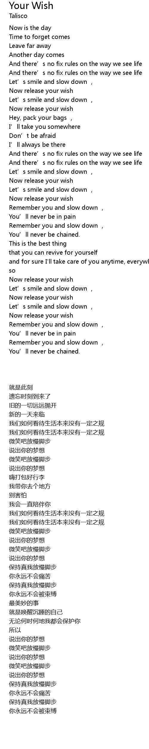 | [03:00.600] | Now release your wish |