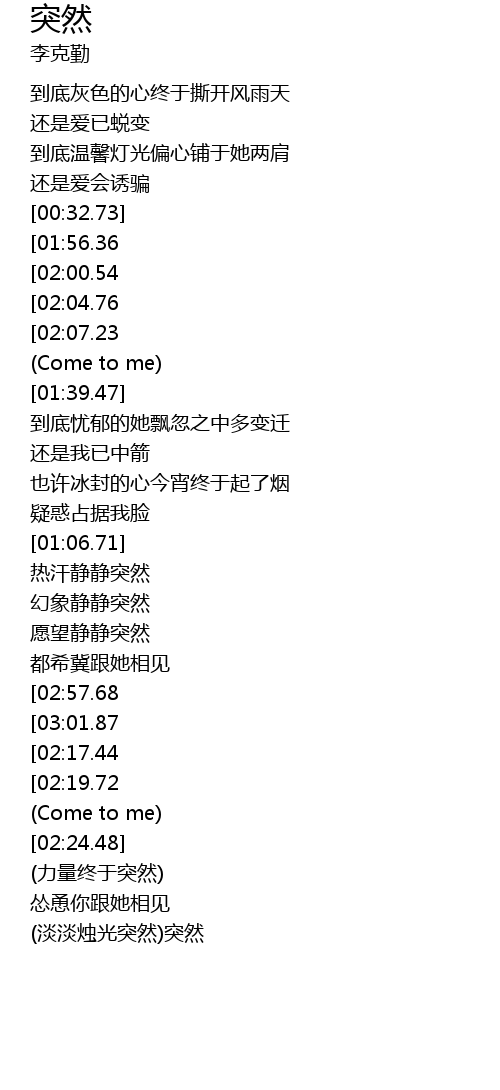 | [02:53.39][02:17.44][01:30.93] | lì liàng jìng jìng tū rán |