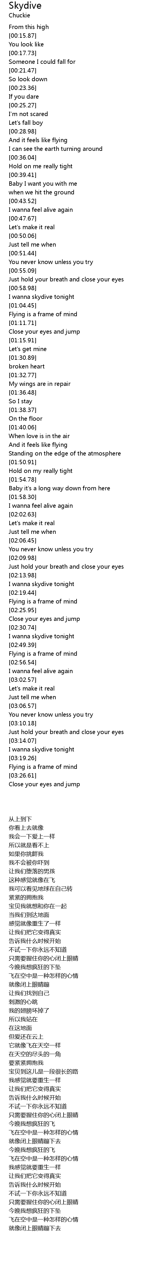 I wanna skydive tonight |