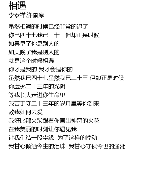 | [00:40.50] | 你已四十七我已二十三但却正是时候 |