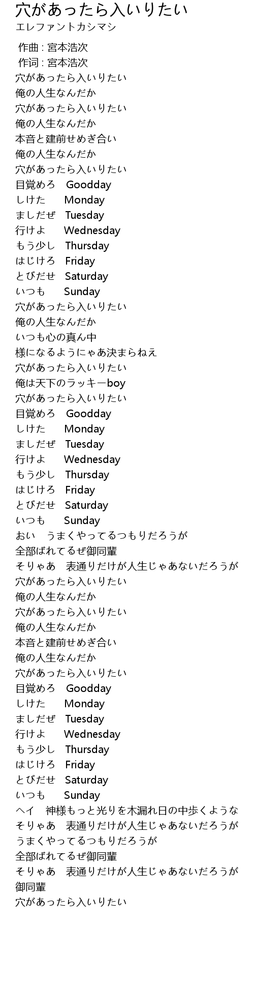 | [00:00.00] | 穴があったら入いりたい |