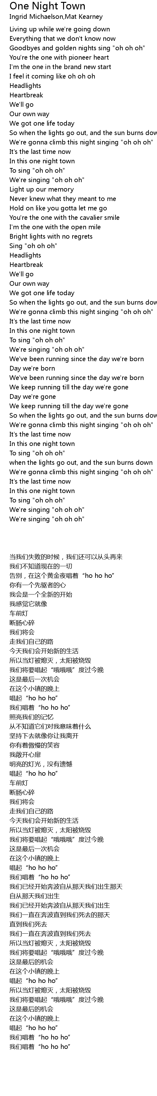 Goodbyes and golden nights sing "oh oh oh" |
