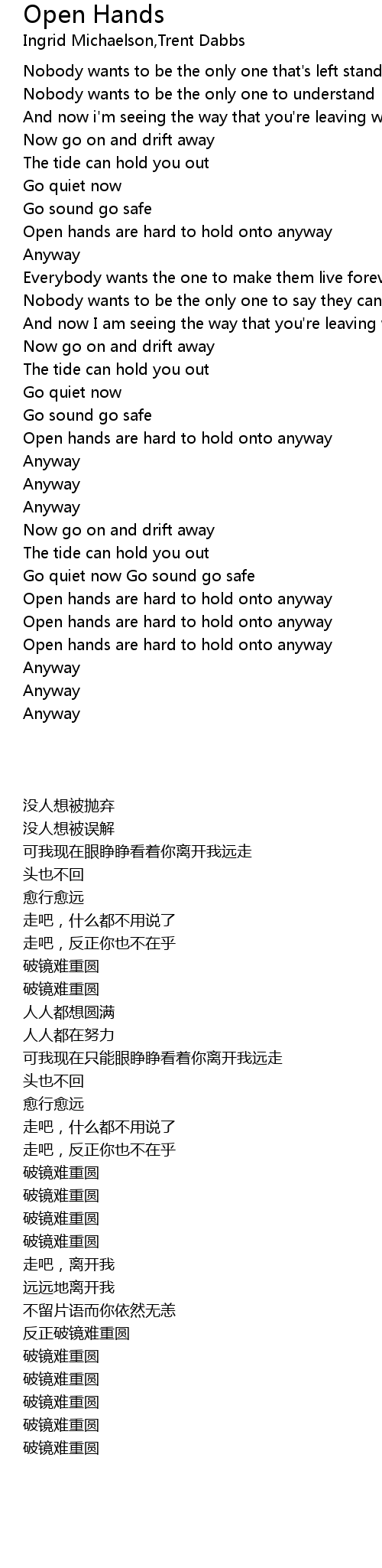 Open hands are hard to hold onto anyway |