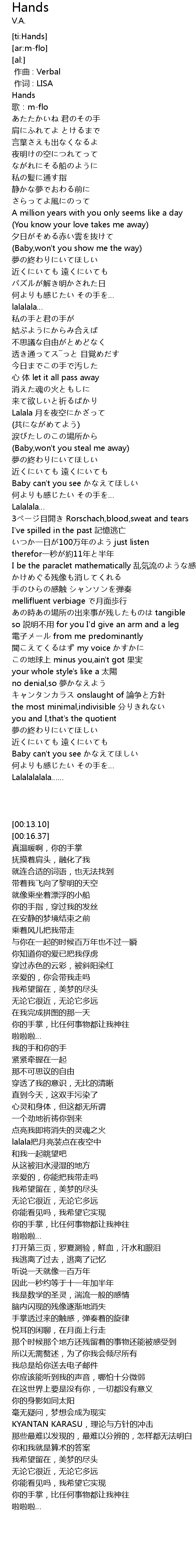 | [03:18.20] | 打开第三页,罗夏测验,鲜血,汗水和眼泪 |