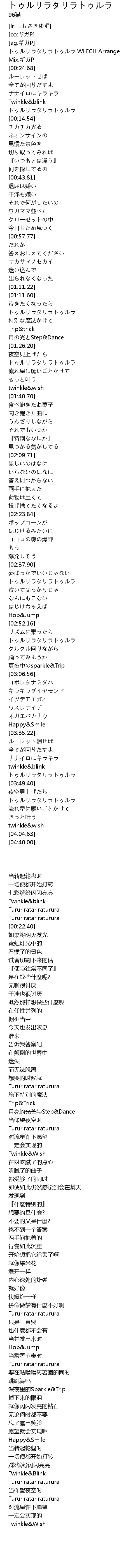 | [00:17.24] | トゥルリラタリラトゥルラ WHICH Arrange |