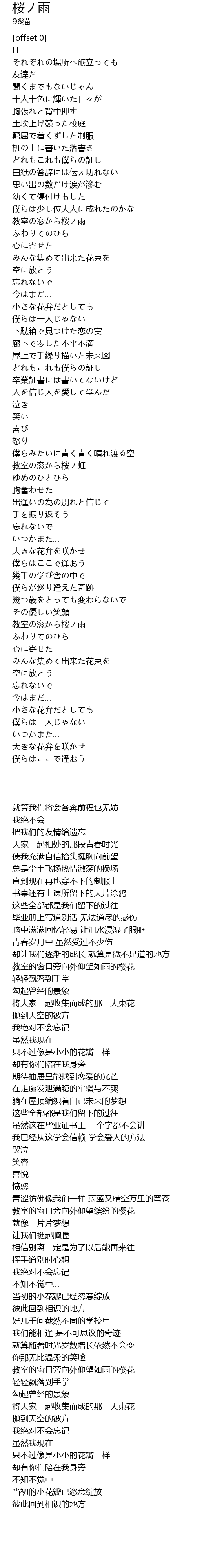 | [01:51.395] | 教室の窓から桜ノ雨 |