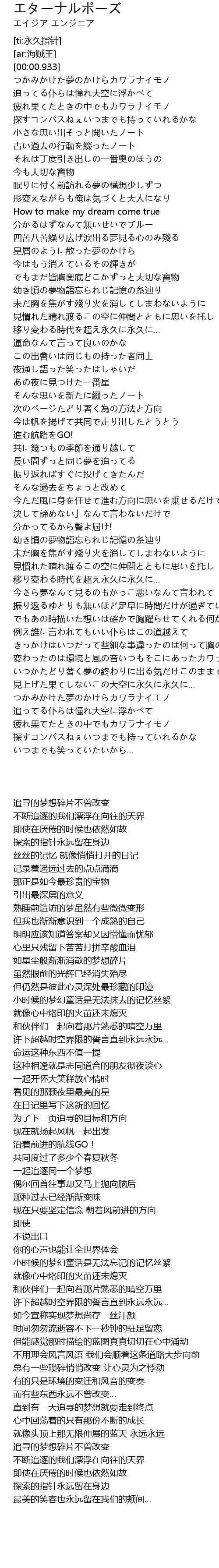 | [04:01.303] | 探すコンパスねぇいつまでも持っていれるかな |