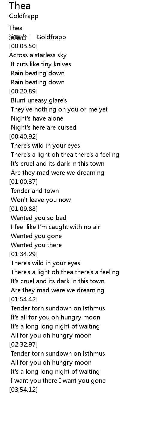 | [00:00.50] | yan chang zhe: Goldfrapp |
