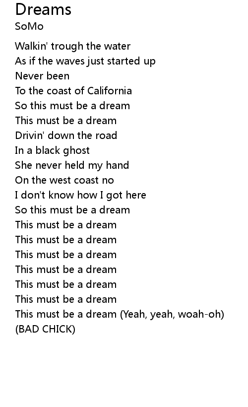 | [00:58.71] | This must be a dream (Yeah, yeah, woah-oh) |