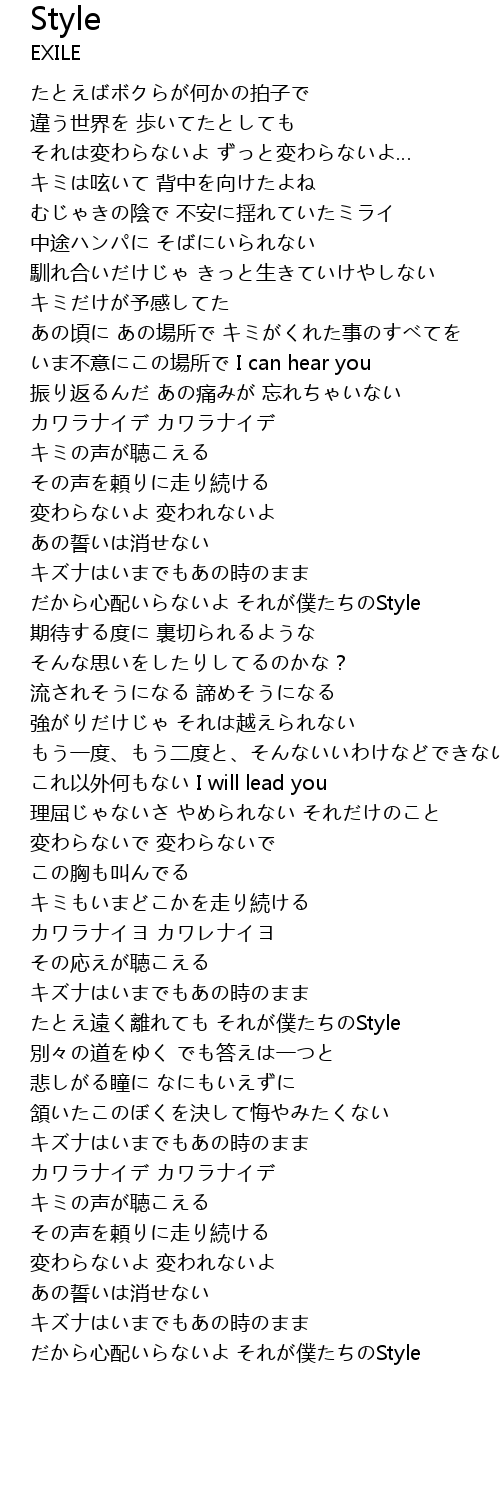| [02:58.990] | たとえ遠く離れても それが僕たちのStyle |