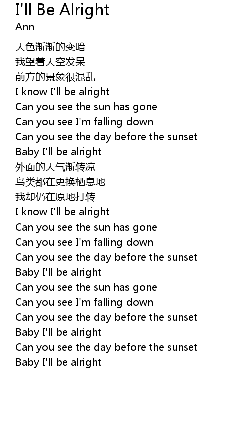 | 歌曲 | I'll Be Alright |