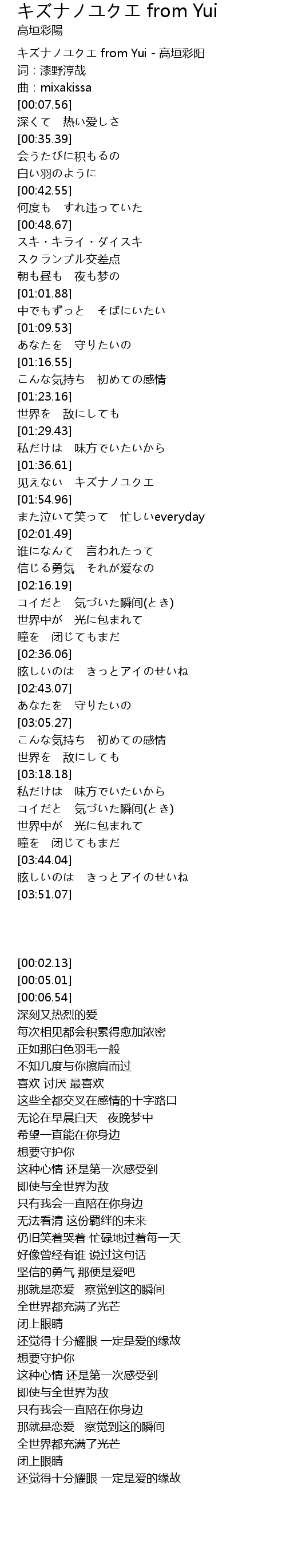 | [00:02.13] | キズナノユクエ from Yui - 高垣彩阳 |