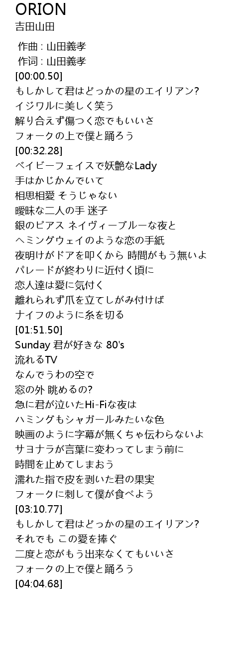 | [03:37.43] | もしかして君はどっかの星のエイリアン? |