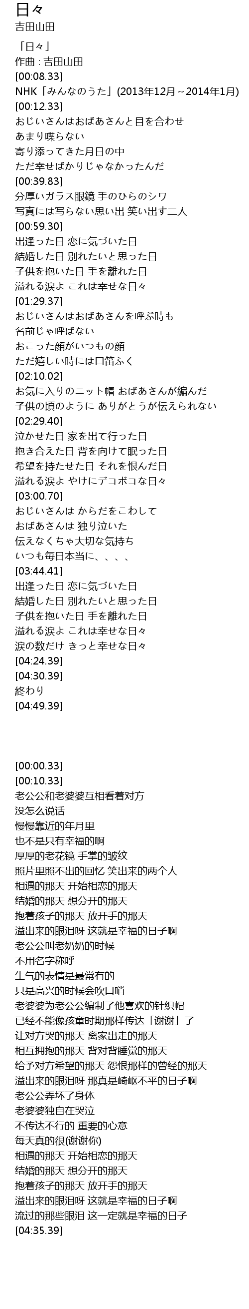 | [01:43.25] | おじいさんはおばあさんを呼ぶ時も |