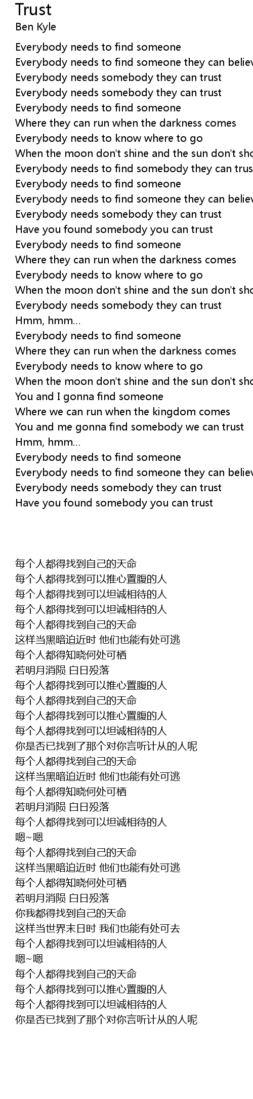 | [2:41.137] | You and me gonna find somebody we can trust |