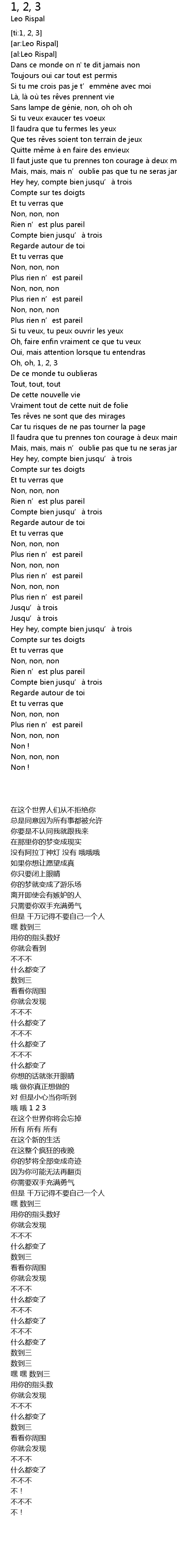 | [02:07.75] | Compte bien jusqu'a trois |