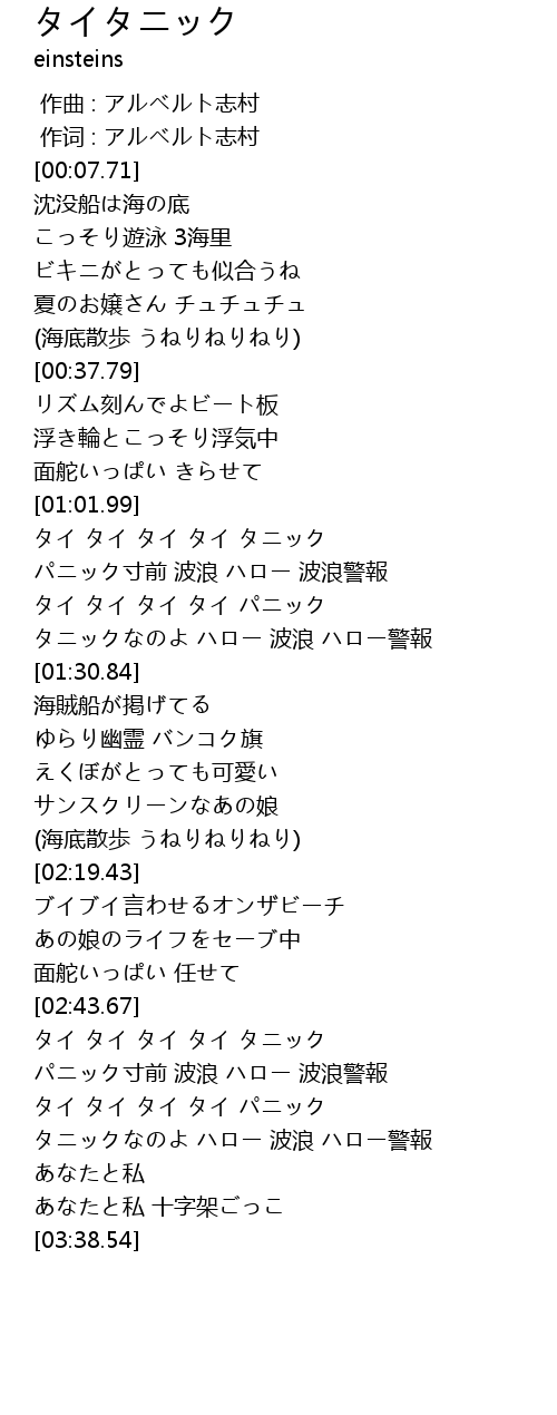 | [01:03.91] | タイ タイ タイ タイ タニック |