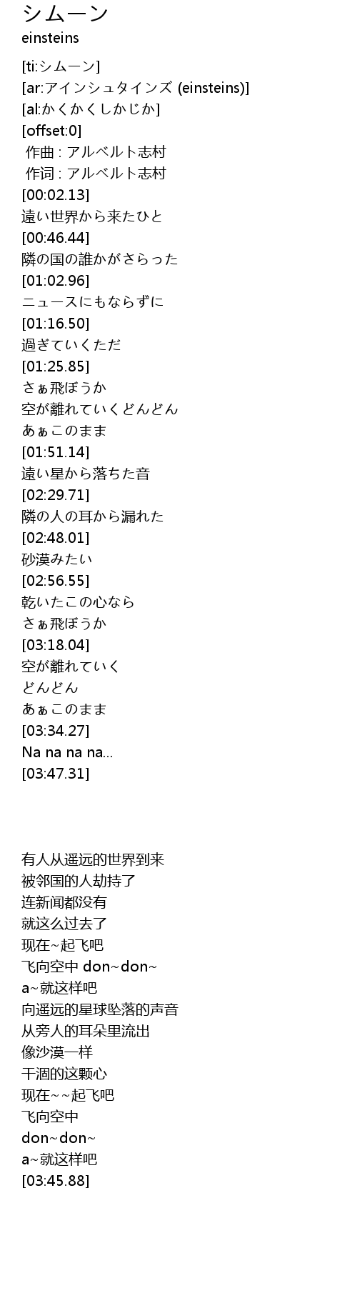 | [00:00.00] | 作曲 : アルベルト志村 |