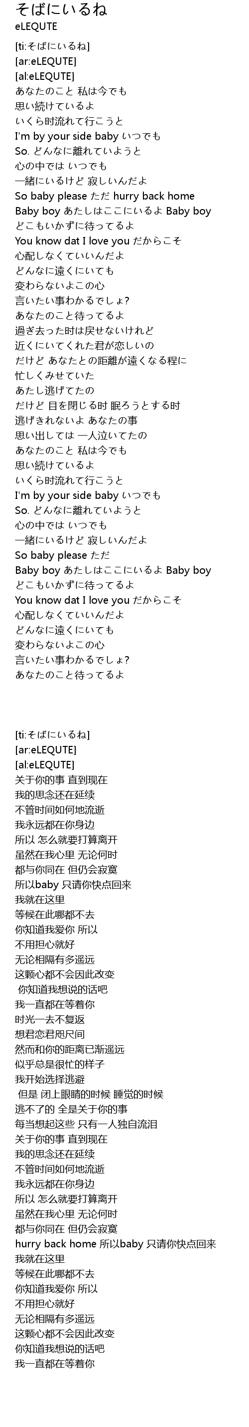 | [01:46.85] | Baby boy あたしはここにいるよ Baby boy |