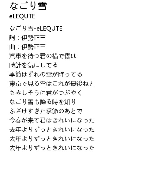 | [00:15.174] | 季節はずれの雪が降ってる |
