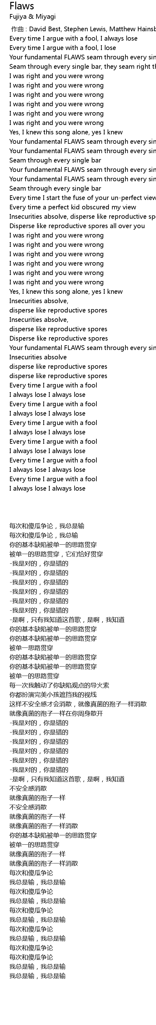 | [00:44.21] | Your fundamental FLAWS seam through every single bar |