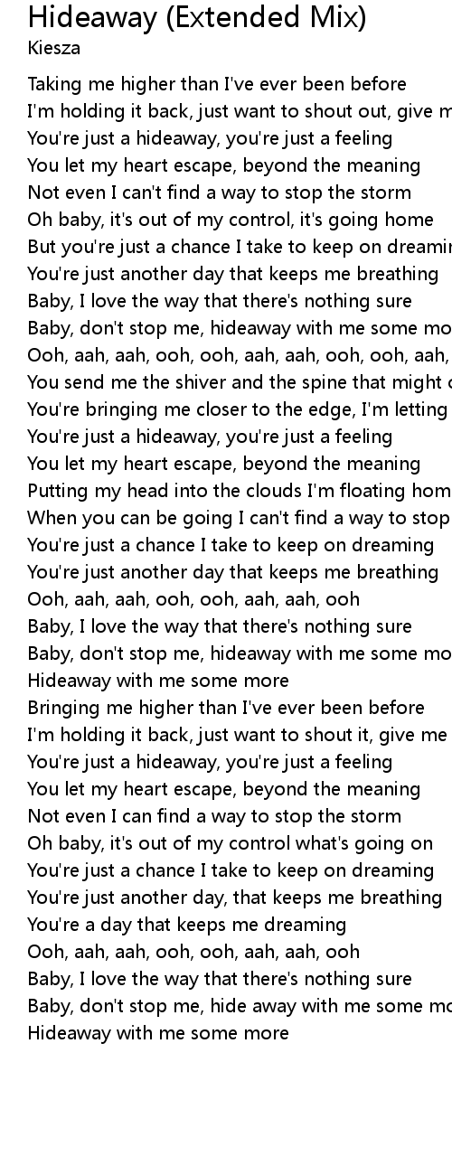 You're just a hideaway, you're just a feeling |