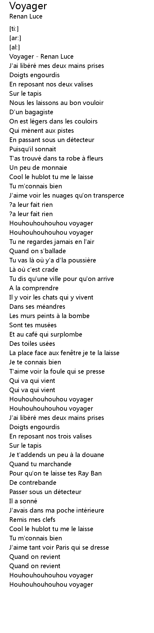 | [00:00.00] | Voyager - Renan Luce |