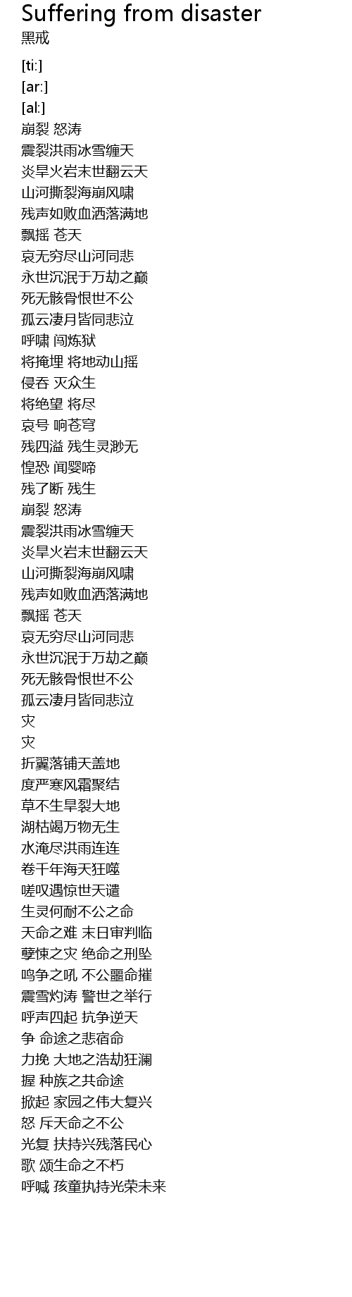 | 歌曲 | Suffering from disaster |