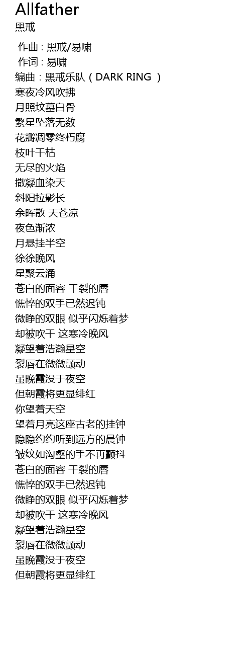 | [00:00.00] | 编曲:黑戒乐队(DARK RING ) |