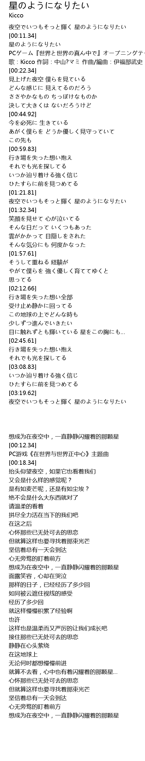 | [00:12.34] | 星のようになりたい |