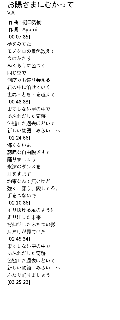 | [00:00.00] | 作曲 : 樋口秀樹 |
