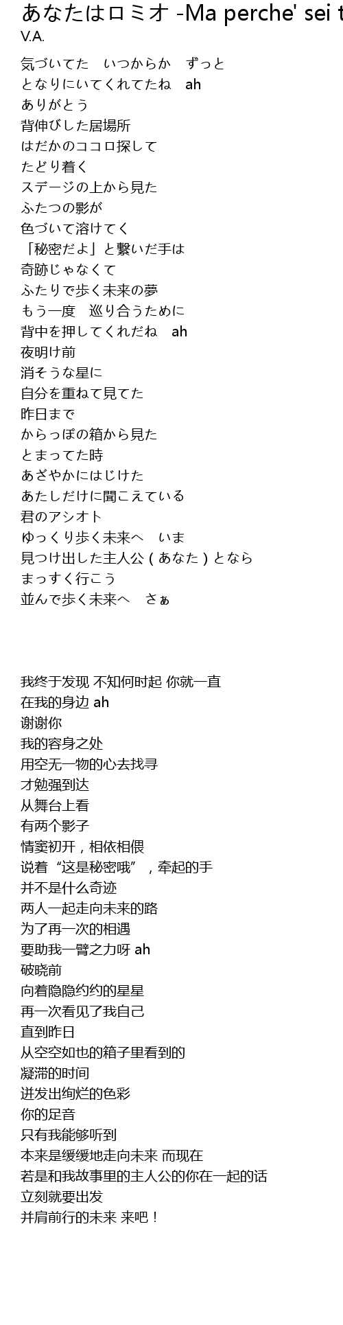 | 歌曲 | あなたはロミオ -Ma perche' sei tu Romeo- |