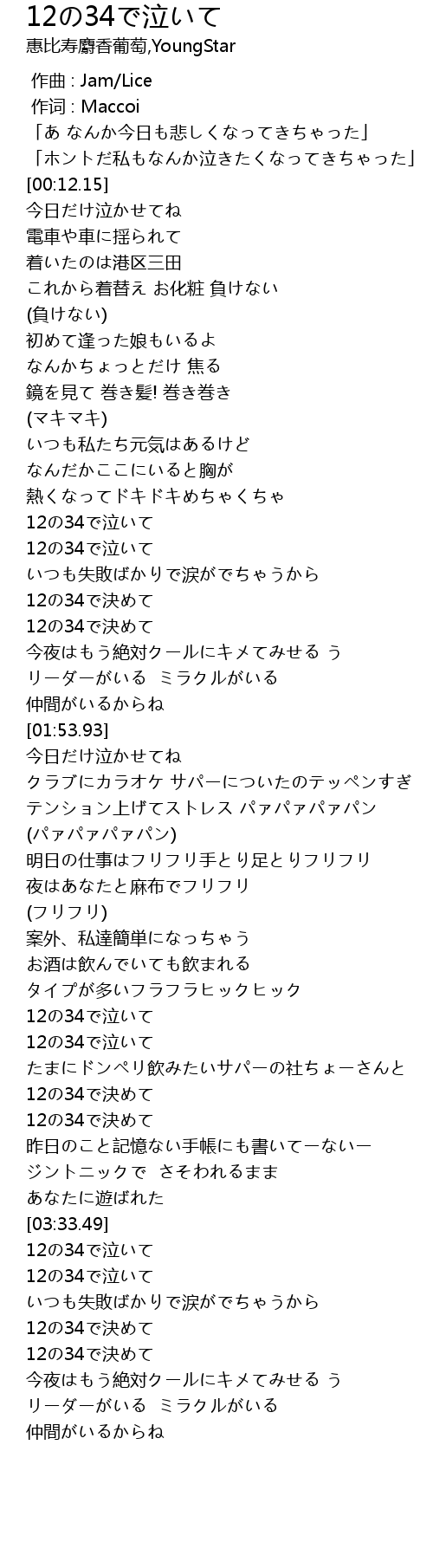 | [02:59.30] | 12の34で泣いて |