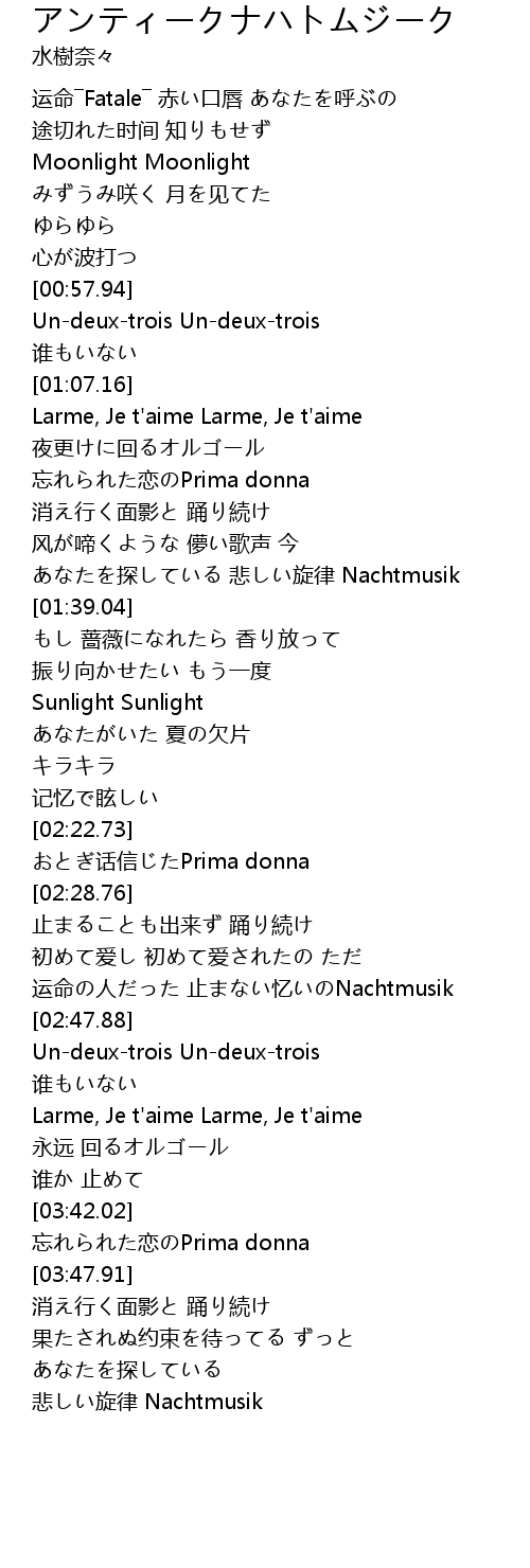 | [02:41.33] | yùn mìng rén zhǐ yì Nachtmusik |
