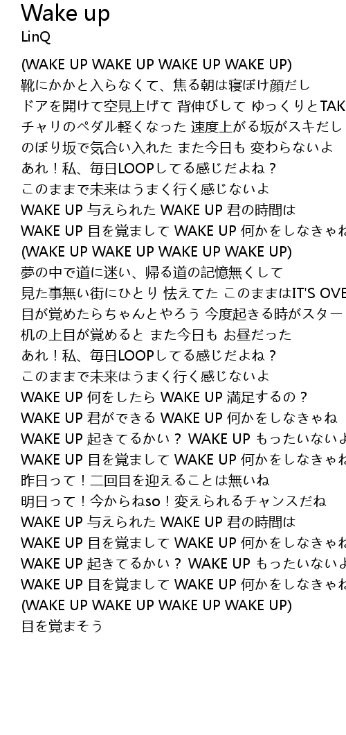 | WAKE UP 目を覚まして WAKE UP 何かをしなきゃね | |