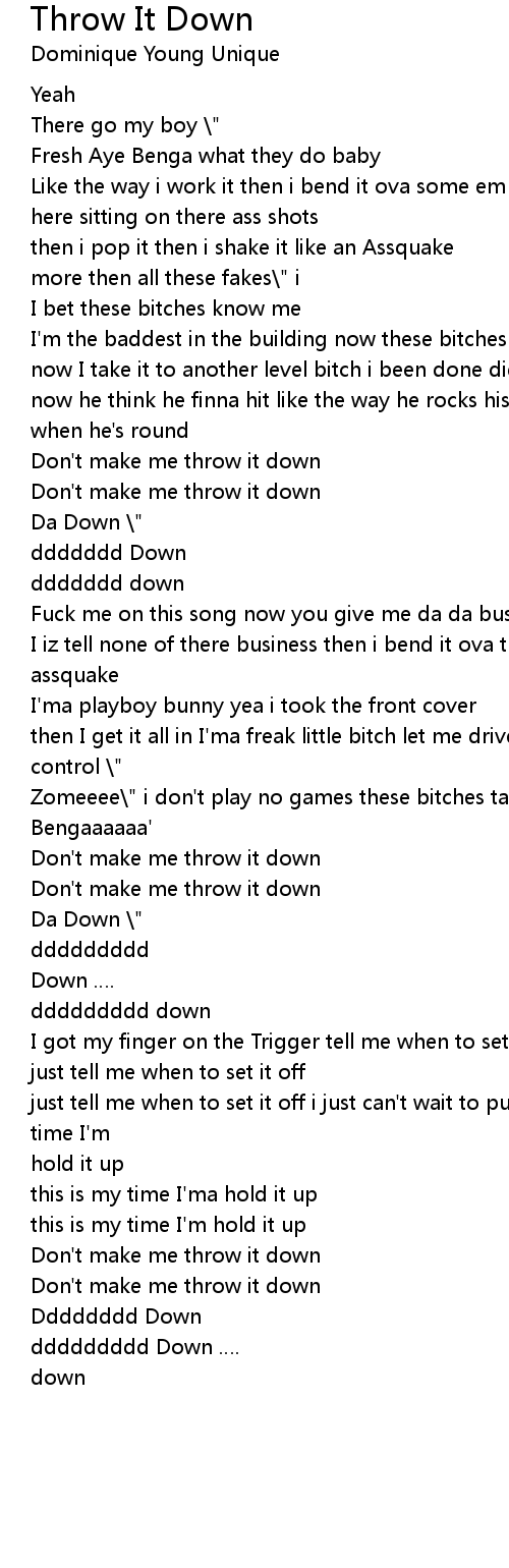 | Fuck me on this song now you give me da da business now these bitches asking who I iz tell none of there business then i bend it ova then I ‘let them kiss the assquake | |