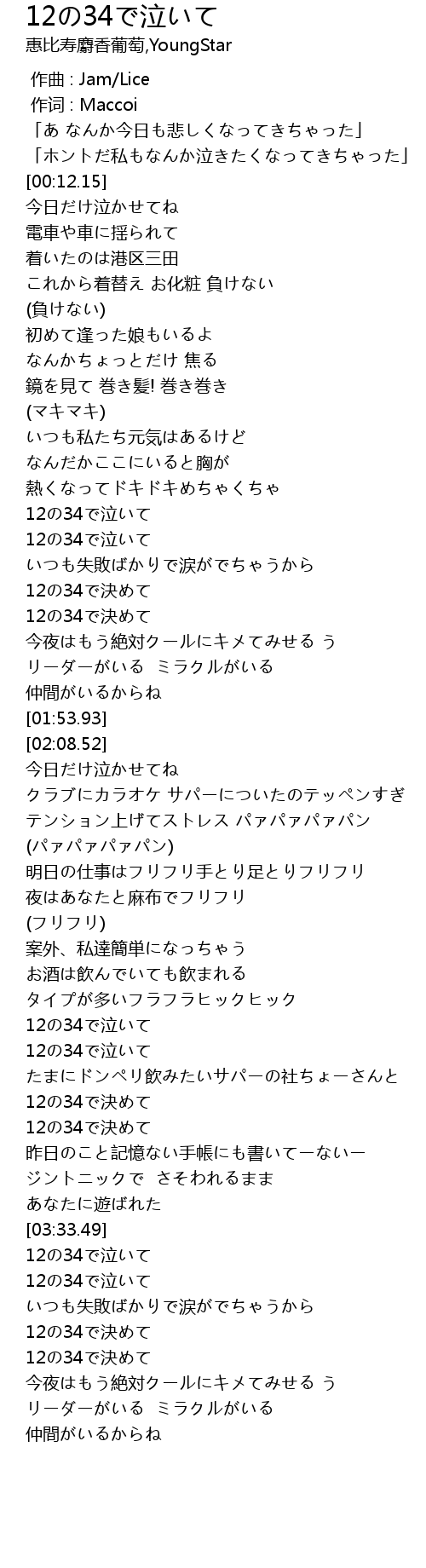 | [03:34.69] | 12の34で泣いて |