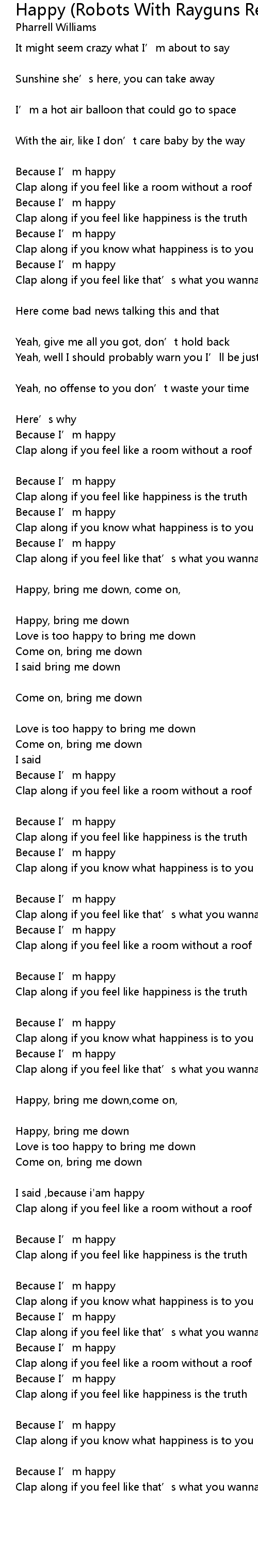 | 歌曲 | Happy (Robots With Rayguns Remix) |
