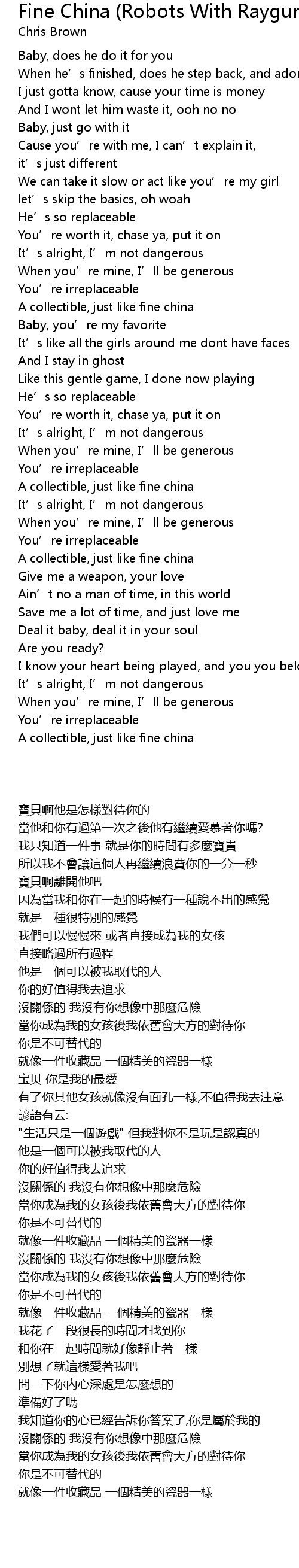 | 歌曲 | Fine China (Robots With Rayguns Remix) |