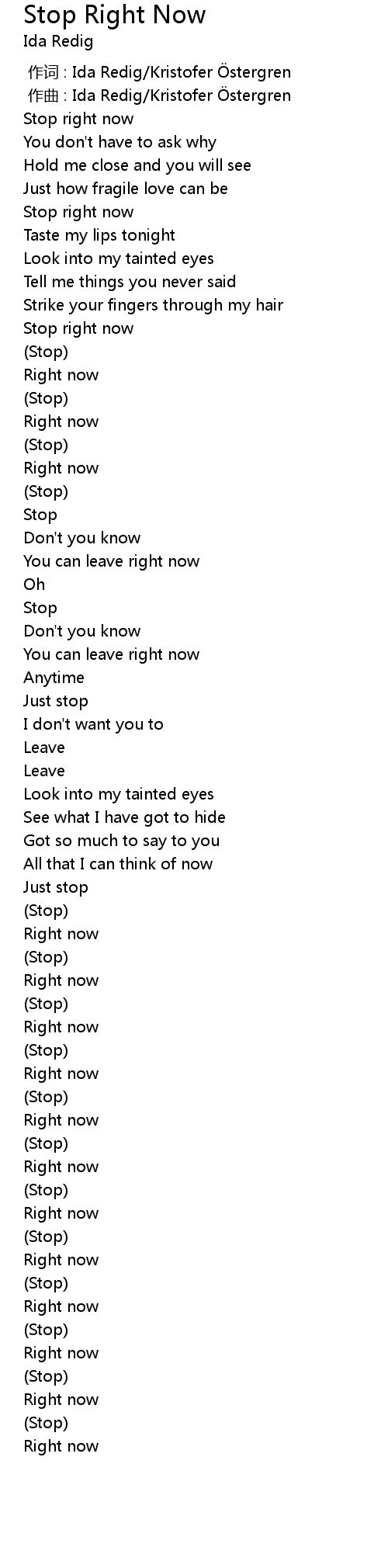 | [00:00.000] | 作词 : Ida Redig/Kristofer Östergren |