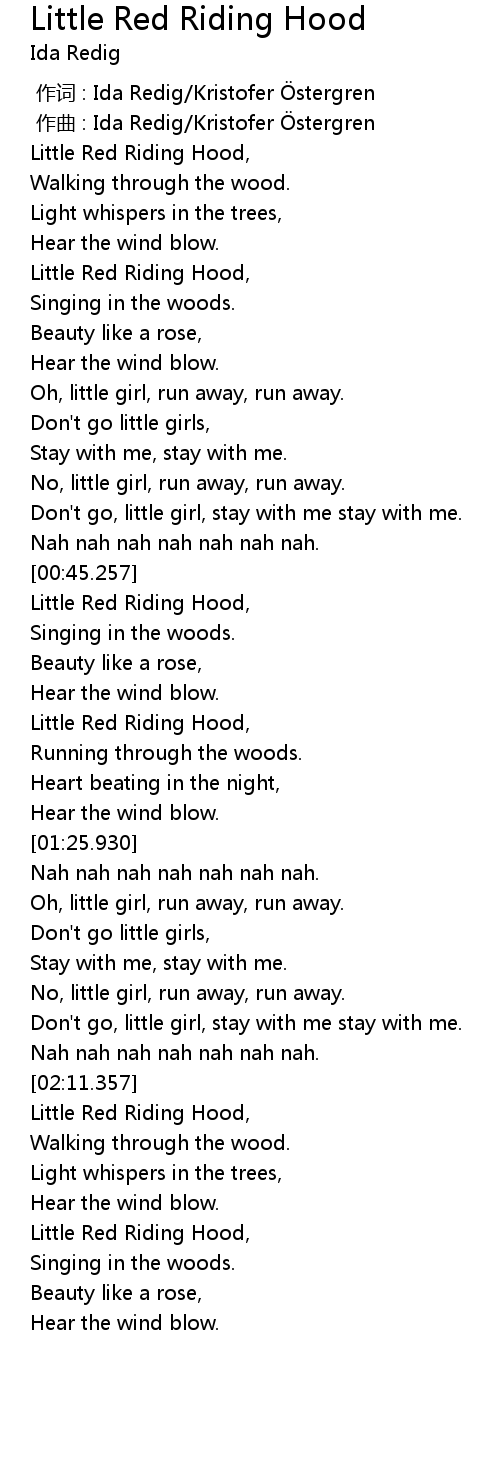 | [01:07.957] | Little Red Riding Hood, |