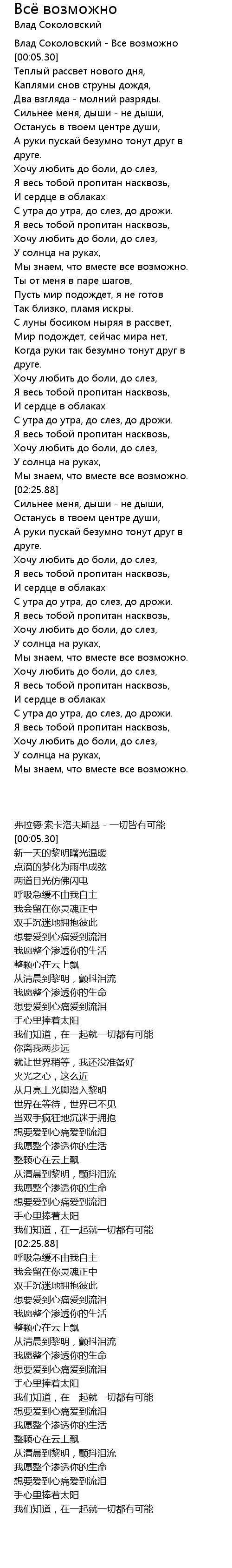 | [00:00.80] | Влад Соколовский - Все возможно |