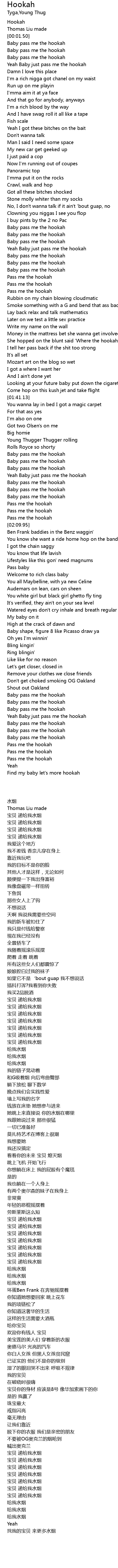 She hopped on the blunt said 'Where the hookah y'all?' |