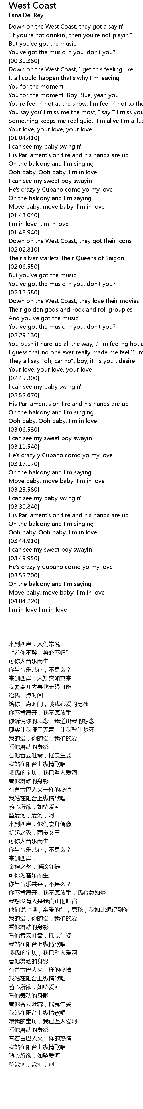 | 歌曲 | West Coast |