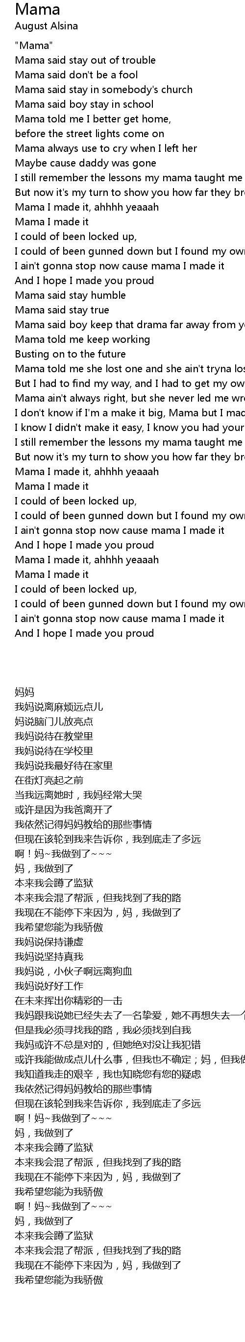 Mama said stay out of trouble |