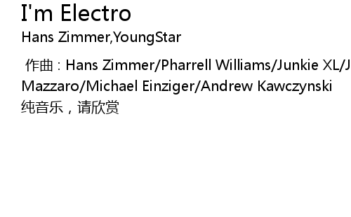 | [00:00.000] | zuo qu : Hans Zimmer Pharrell Williams Junkie XL Johnny Marr Steve Mazzaro Michael Einziger Andrew Kawczynski |