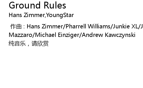 | [00:00.000] | zuo qu : Hans Zimmer Pharrell Williams Junkie XL Johnny Marr Steve Mazzaro Michael Einziger Andrew Kawczynski |