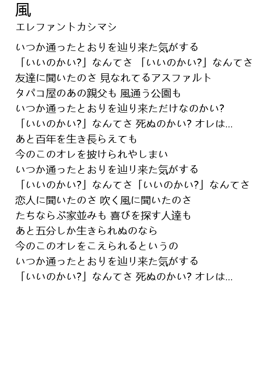 | 友達に聞いたのさ 見なれてるアスファルト | |