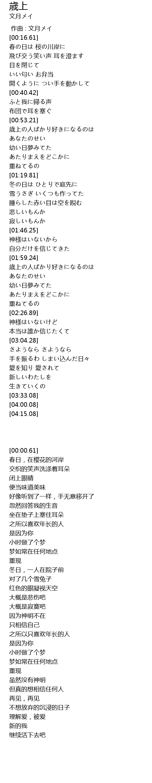 | [00:00.00] | 作曲 : 文月メイ |