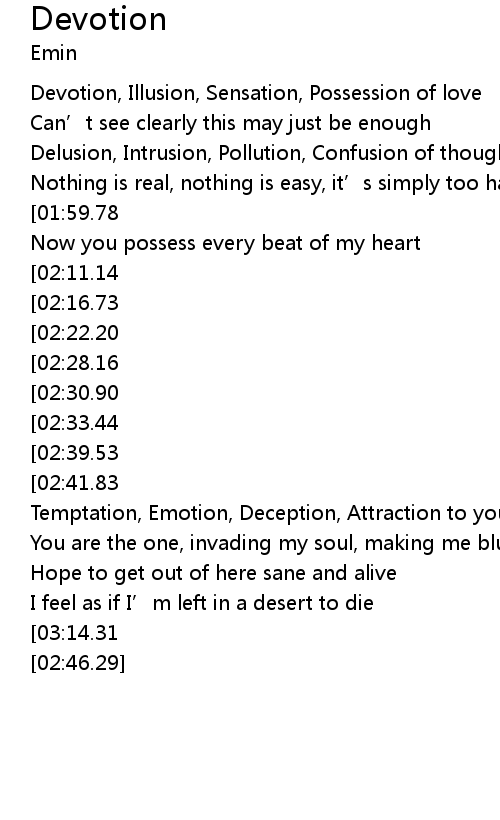 | [00:28.41] | Devotion, Illusion, Sensation, Possession of love |